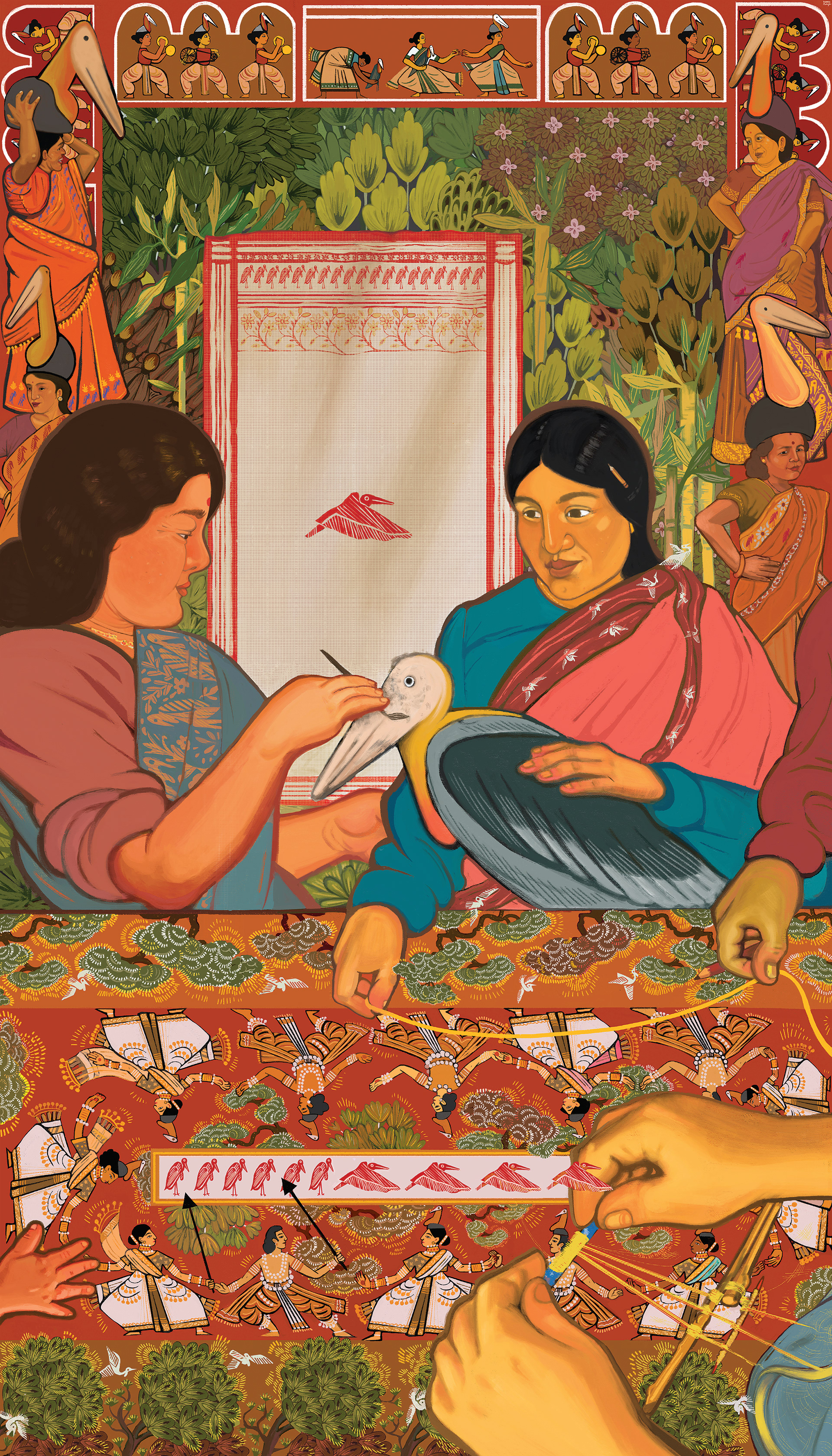This artwork portrays the story of The Hargila Army from Assam, India.