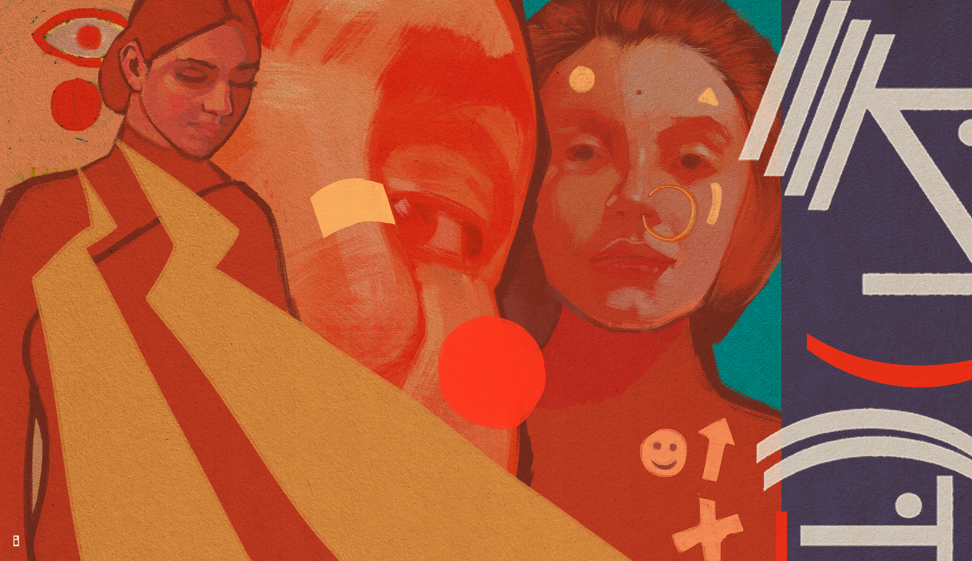 A series of portrait paintings with a mixed media approach.