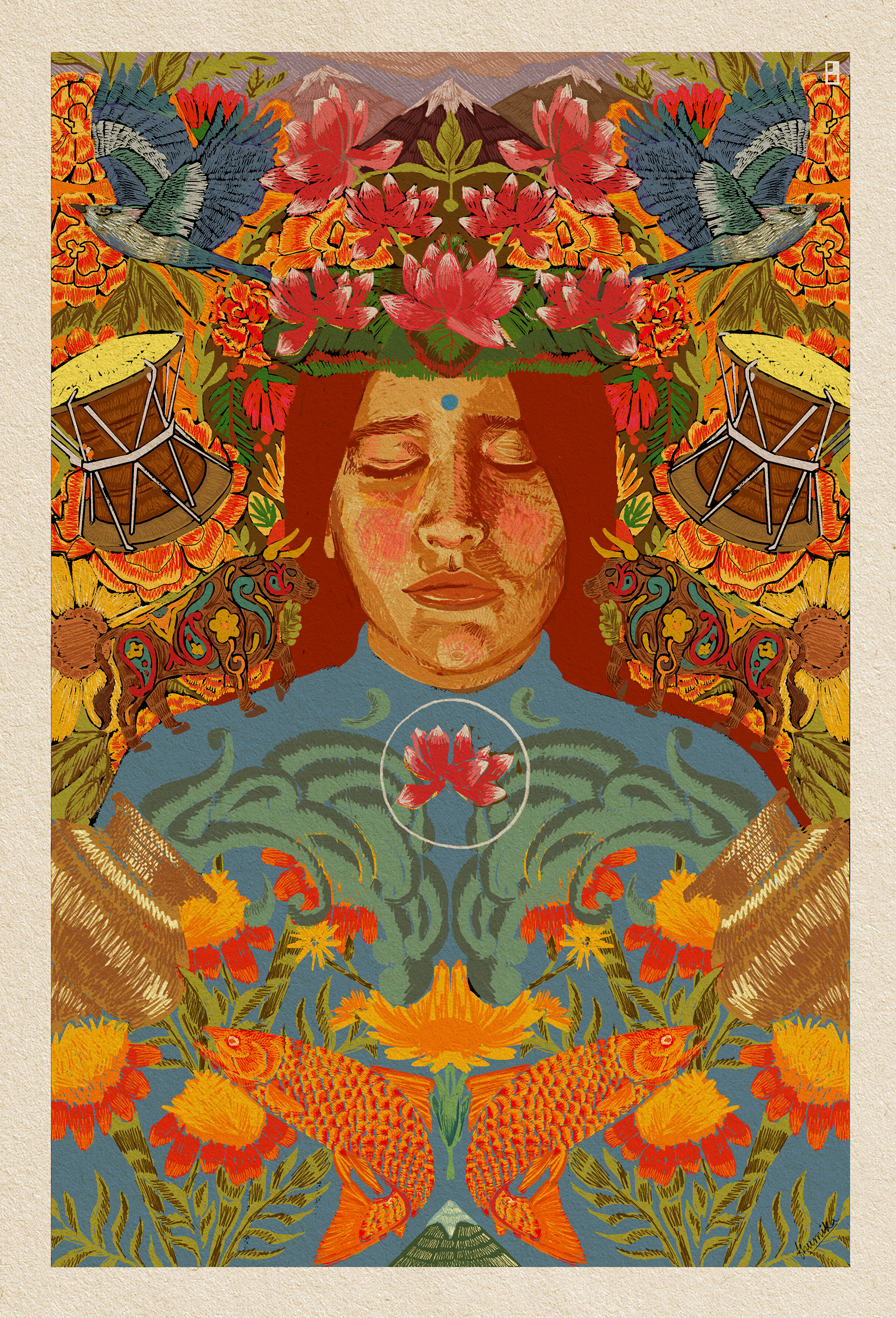 Ganga, the first born of Himalayas, is a sacred river and a deity of purification, the cycle of life & moksha in India.